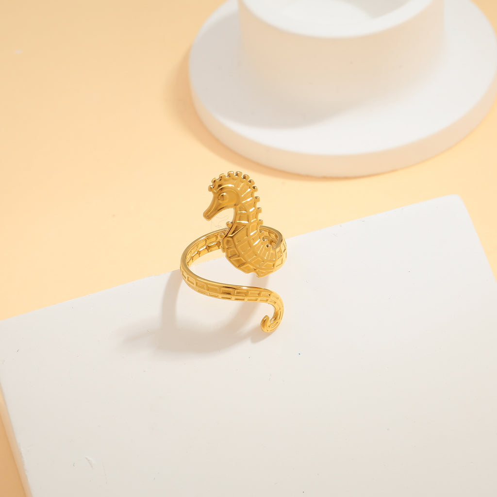 European and American InS-style jewelry rings and bracelets, 18K gold seahorse rings, simple, light luxury and high-end jewelry