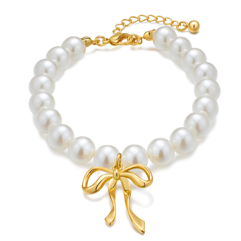 European and American Style Light Luxury Niche High-end Bowknot Pendant Pearl Bracelet Women's Retro Elegant All-match Jewelry Bracelet
