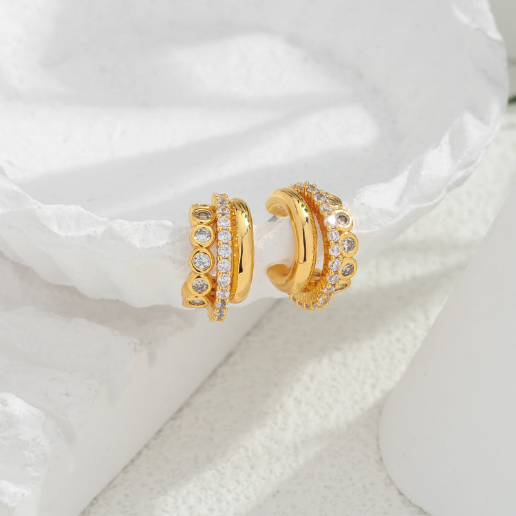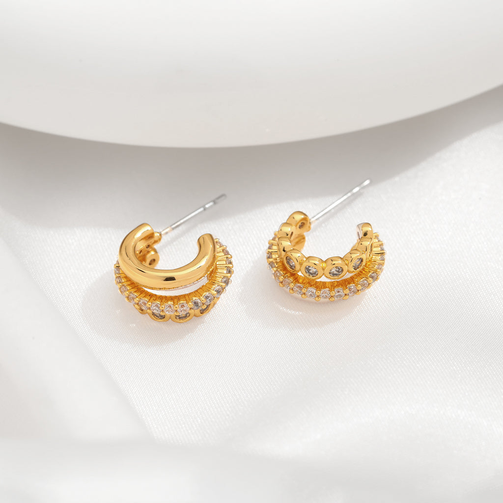 Geometric retro 18K gold earrings with a high-end European and American feel, popular earrings with micro inlaid zircon earrings and ins style earrings