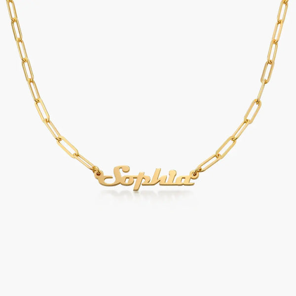 Additionally, this vintage name necklace is not just a piece of jewelry but a potential heirloom. Pass it down through generations, and let it become a part of your family’s history. Featuring a comfortable, timeless design, the necklace is suitable for any neckline and complements other jewelry effortlessly. It also comes with a secure clasp to make sure it stays in place all day long, so you can wear it with confidence.