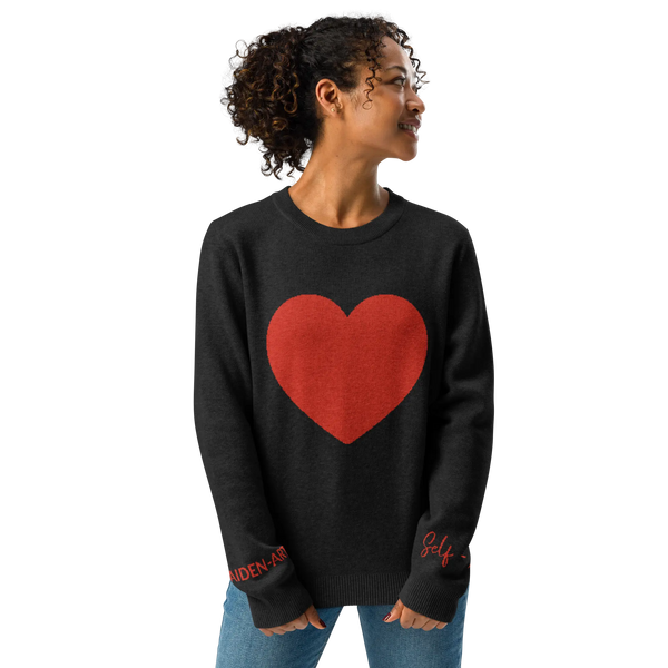 Heart - Knitted crew neck sweater BLACK Maiden-Art