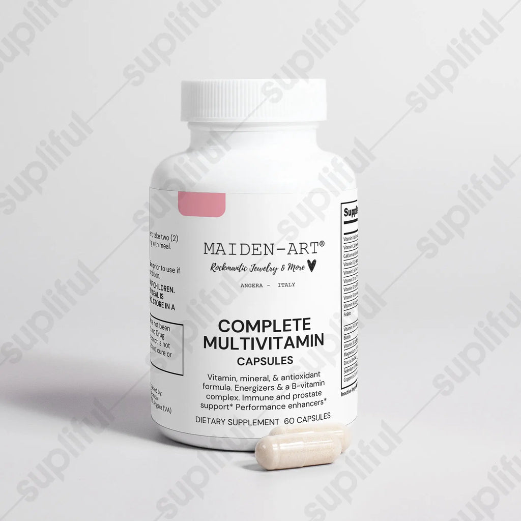 Ingredienti: Vitamina A (come beta-carotene), Vitamina C (come acido ascorbico), Calcio (come carbonato di calcio), Vitamina D (come colecalciferolo), Vitamina E (come acetato di DL-alfa-tocoferolo), Vitamina B1 (come mononitrato di tiamina), Vitamina B2 (come riboflavina), Vitamina B3 (come niacina), Vitamina B6 (come piridossina HCL), Folato, Vitamina B12 (come cianocobalamina), Biotina, Vitamina B5 (come pantotenato di calcio D), Magnesio (come ossido di magnesio), Zinco (come ossido di zinco), Selenio (come chelato di aminoacido di selenio), Rame (come gluconato di rame), Manganese (come chelato di aminoacido di manganese), Cromo (come picolinato di cromo), Molibdeno, Supporto per la salute (luteina, licopene, estratto di ortica, palmetto), Supporto immunitario (echinacea Estratto, Beta Glucano, Spirulina, Aglio), Miscela di Frutta Antiossidante ed Energetica (Estratto di Tè Verde, Bacche di Biancospino, Estratto di Corteccia di Cannella, Estratto di Mirtillo Nero, Estratto di Semi d'Uva, Estratto di Ribes Nero, Estratto di Melograno), Cellulosa (Capsula Vegetale), Farina di Riso, Magnesio Stearato, Biossido di Silicio.