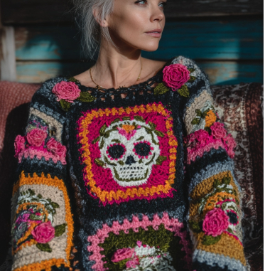 Womens Retro Printed American Style Streetwear Loose Knit Sweater Top
