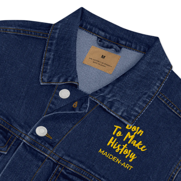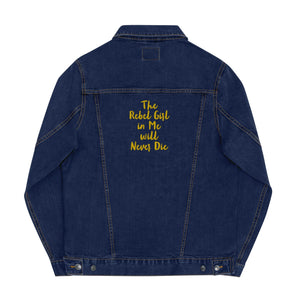 The Rebel Girl in Me will Never Die Unisex denim jacket - Gold Embroidery Maiden-Art