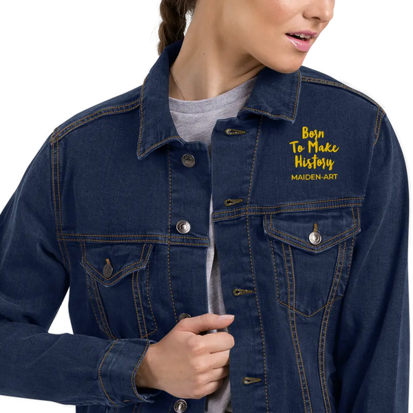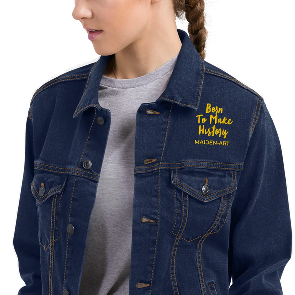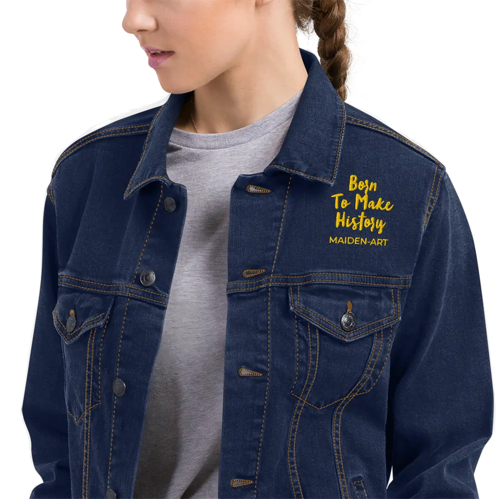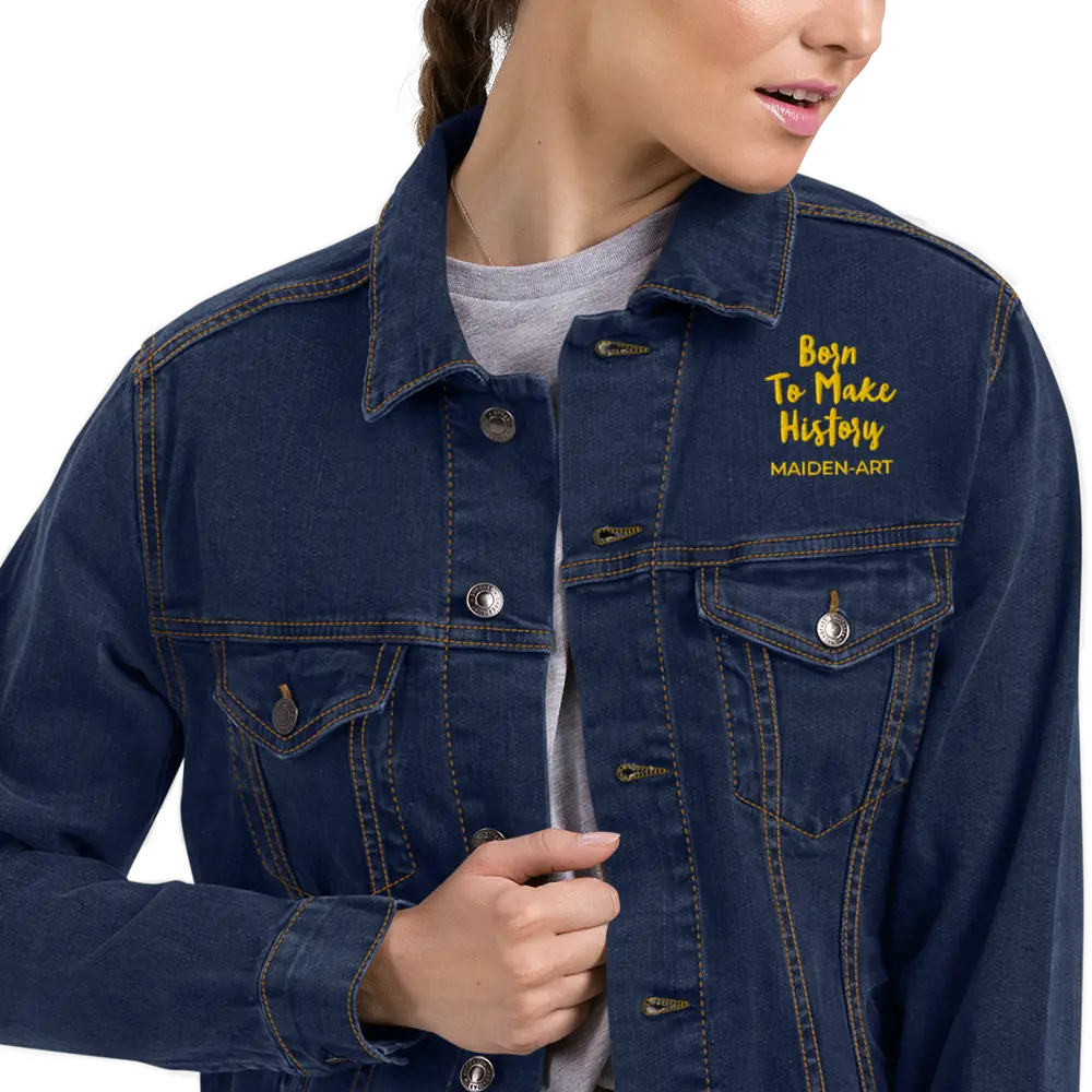 Embroidered denim jacket The Rebel Girl in Me will Never Die Unisex denim jacket - Gold Embroidery Maiden-Art