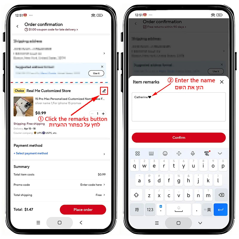 Hello, customer friend, if you are unable to Note the name you need to customize, please leave a message in the customer service dialog box and write down the name you need to customize (if you need love symbol❤, please also note). We will record it. Thank you.