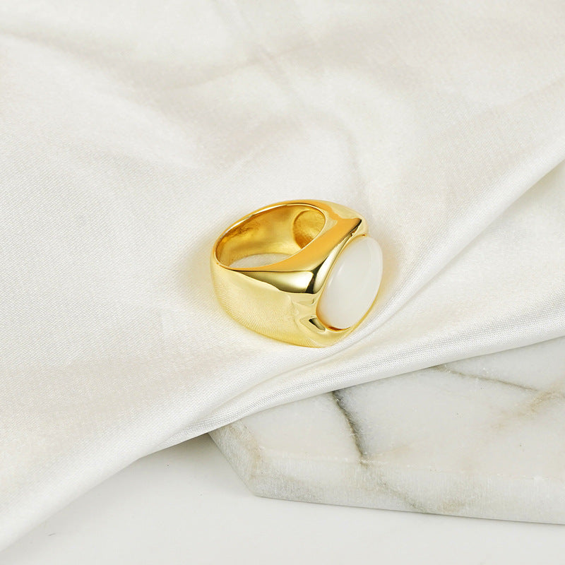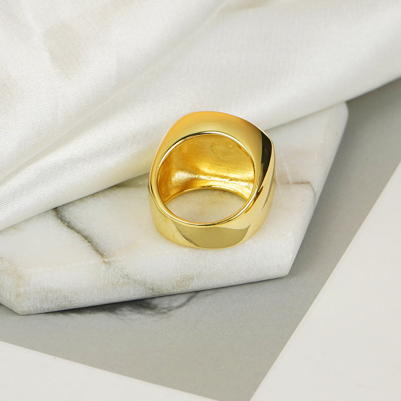 European and American Copper Plated Real Gold Hip Hop Fashionable Ring Geometric Small Fresh Cross-border Distinctive Horn Bag Ring